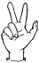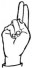 На ћирилици написано ПАУН БУКАРИЦА састоји се из 12 слова [?]. Исписано ћириличном једноручном азбуком за глувонеме: